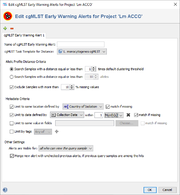 The Plasmid Early Warning Alert definitions can be created and managed using the menu command Options > Mash Plasmid Databases. The EWAs can be modified using the button Button16-earlywarningplasmid.pngEdit Early Warning Alert.