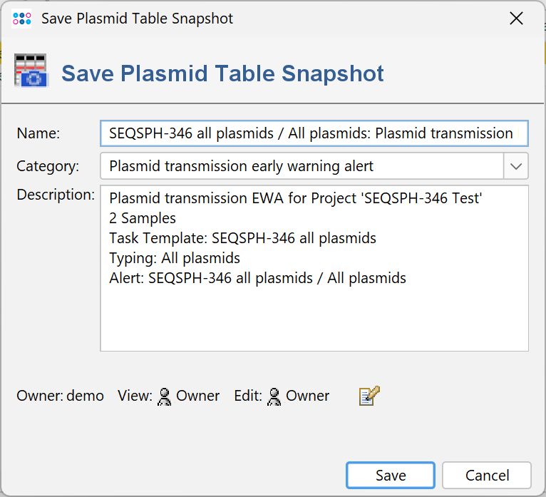 Save Plasmid Table Snapshot: Create a snapshot of the plasmid table. The snapshots can be opened using the menu command Tools > Comparison Table. Note that it is not possible to search for similar plasmids when opening the snapshots.