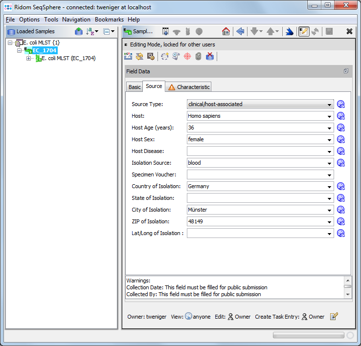 DNA re-sequencing editorWGS data: Assemble data using the integrated de-novo Assembler Velvet or Spades, or the BWA reference mapper. Edit and analyze assembled DNA sequences (e.g., for MLST or cgMLST typing). Auto-correction of homopolymer related InDel errors (Ion PGM & 454 GS Junior). Sanger data: Assemble, edit and analyze Sanger CE sequencing data (e.g., for 16S rDNA or MLST typing). Chromatograms can be automatically assembled into contigs using configurable file naming conventions. DatabaseStore, search, retrieve, export and create reports from your circumstantial information (e.g., place and time) and DNA sequence data stored in an integrated SQL database. Search new sequence entries against stored data. Data fields are compliant with the metadata requirements of the NCBI BioSample. Data entry plausibility checks are possible. Bacterial genotypingTyping of bacteria is automatically performed. Ridom Typer includes support for the following genotyping methods: MLST: Fetch allele numbers for sequences and STs from the PubMLST server or define a local MLST typing, e.g. for using new targets. cgMLST: Extension of MLST that uses thousands of targets, for a gene-by-gene allele typing of NGS data. Resistance, virulence, and serotyping: Genotypic resistance prediction by usage of the NCBI AMRFinderPlus, virulence typing via VFDB (that supports 54 species of medical importance), and Listeria monocytogenes and Escherichia coli serotyping. Automatic NCBI GenBank online queries: Compare the DNA sequences with best matches from GenBank. Single locus queries: Do single locus typing (SLST) and compare against libraries stored in the local database. Quality checkingQuality of DNA data can be automatically checked with user defined target QC parameters (e.g., coverage, intragenic stop codons, frame shifts detection). Analytical toolsSelect data entries from a comparison table for epidemiologic studies, evolutionary or functional analysis. Cluster and visualize data entries by using minimum spanning or UPGMA/Neighbor Joining trees. SecurityEncryption (SSL) of data in transmission. Various configurable user roles, user groups and access controls. Audit trail functionality (who, when and what). CommunityOption to contribute to a single world-wide expanding publically available database of nomenclature and epidemiologic data. Own server for epidemiologic data for larger (supra) national institutions on request. Rapidly and easily share task templates with other institutions or download them online from the Task Template Sphere. |