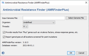 - Provide results from 'Plus' genes: AMRFinderPlus splits the database into two subsets and the one that includes genes related to biocide and stress resistance, general efflux, virulence, or antigenicity will be only shown if this option is selected (selected by default).