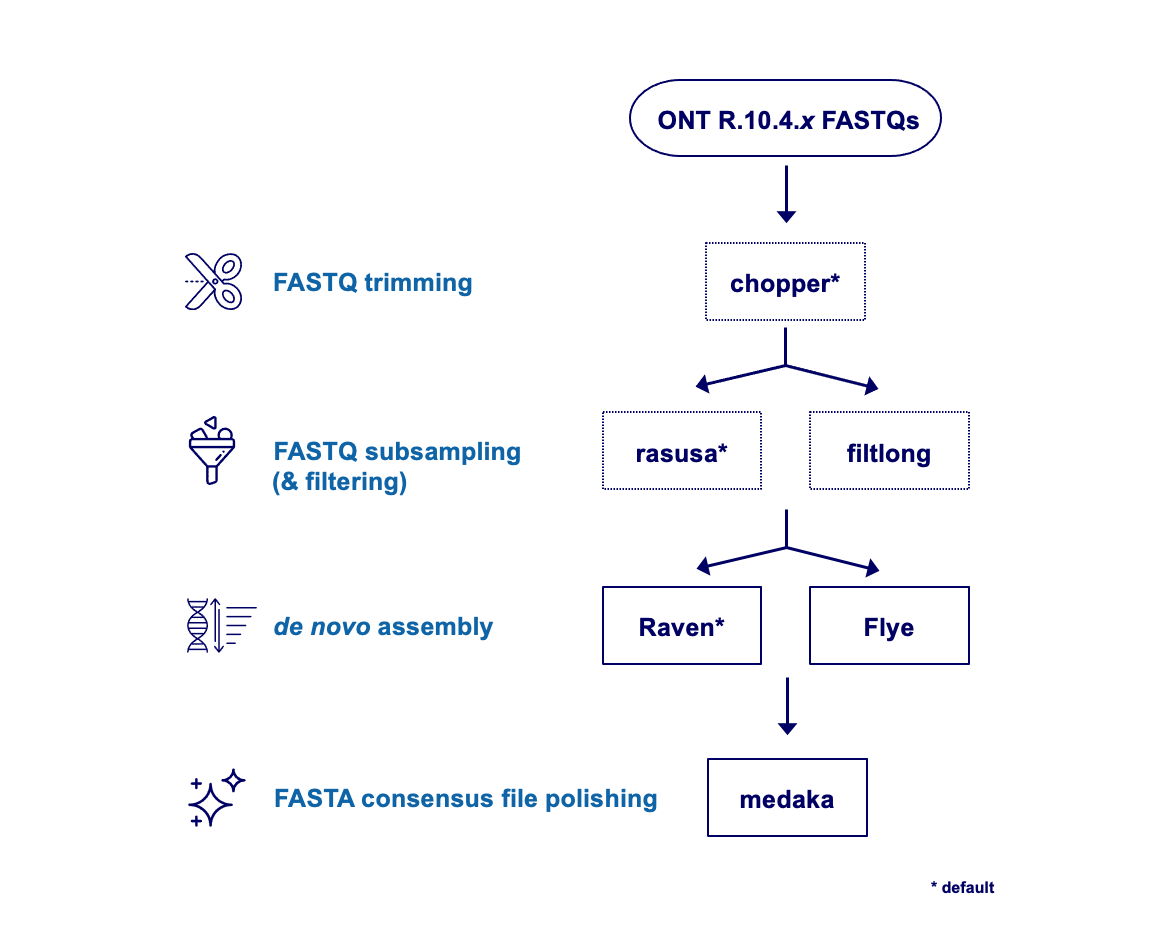 The module enables users to assemble Oxford Nanopore Technologies (ONT) FASTQ-files. The module consists of the following tools: