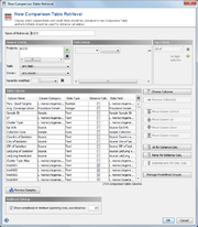 Advanced Settings dialog to create a new Comparison Table Retrieval