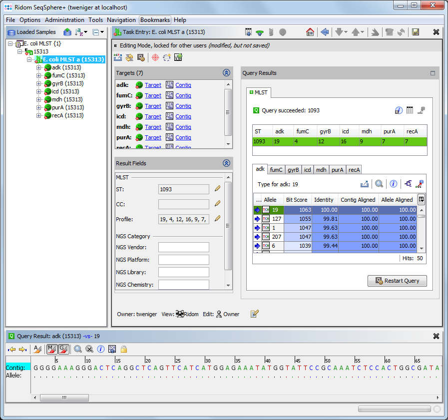 Example of a Task Entry Overview for an E. coli MLST task entry